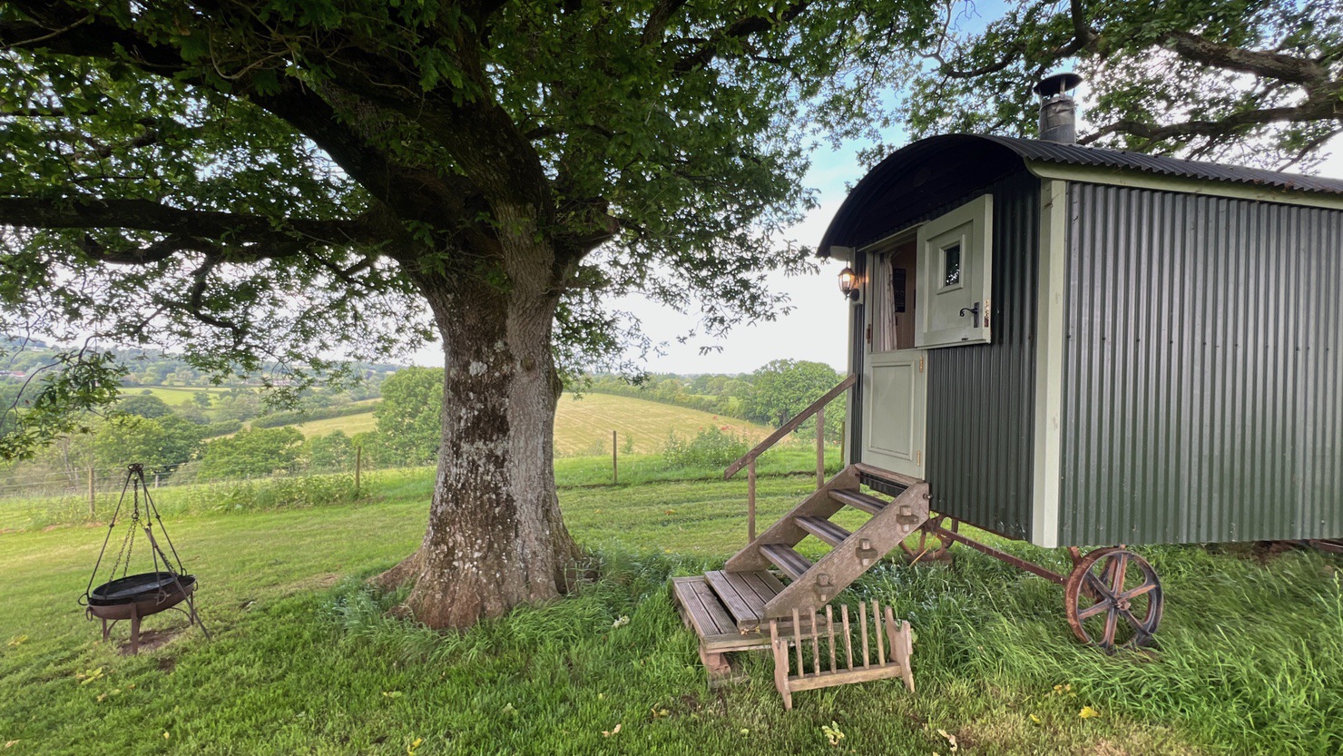 Our two stylish huts allow you to experience a unique blend of rustic charm and modern comforts. Our Shepherd’s Hut is nestled between mature oak trees on a beautiful hillside, while our newly available Ruby Owen sits at the top of a stunning meadow during the warmer months and moves next to the Milking Parlour as the winter months draw in.